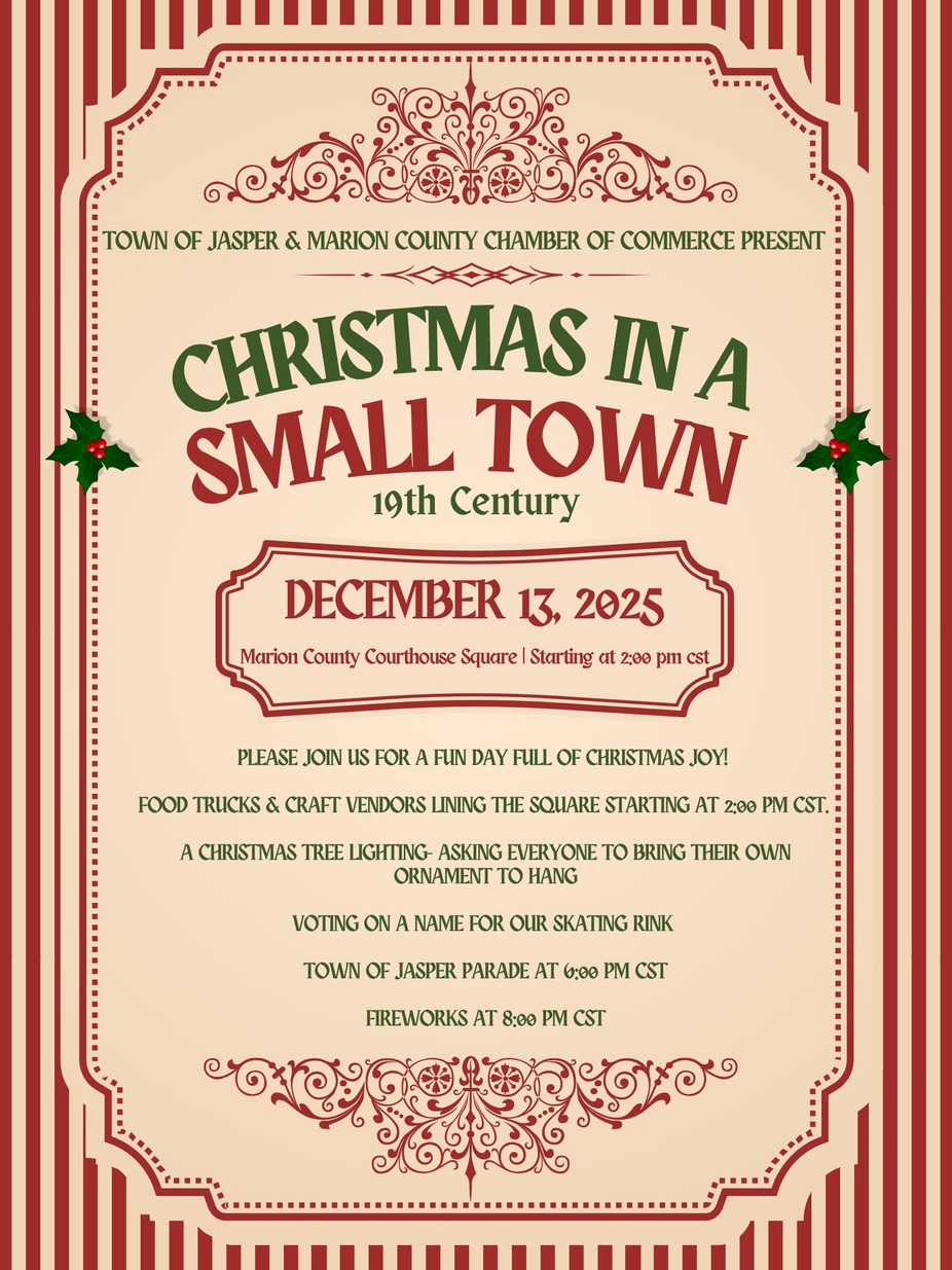 Where to Find UsTown of Jasper Tn ChristmasSaturday December 13thChristmas in a Small Town02:00 PM - 10:00 PM
